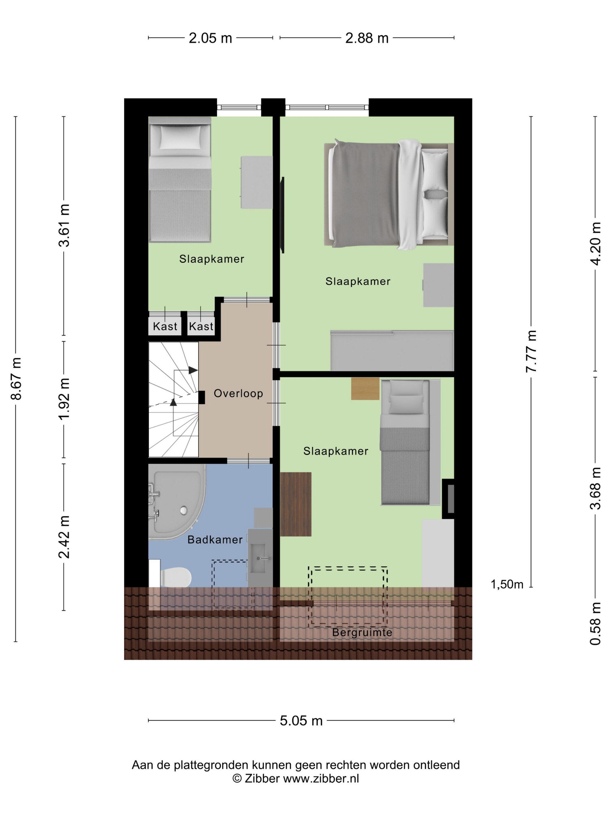 De tweede verdieping is verrassend veelzijdig. Hier vind je de aansluitingen voor de wasmachine én de vierde slaapkamer. Dankzij de twee dakramen is ook deze verdieping heerlijk licht. Deze ruimte is multifunctioneel en kan eenvoudig worden aangepast aan jouw wensen.